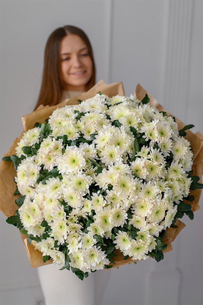 Букет '31 белая хризантем' — это воплощение утончённости и свежести. Его изысканные цветы создадут прекрасную атмосферу и наполнят день яркими эмоциями.
