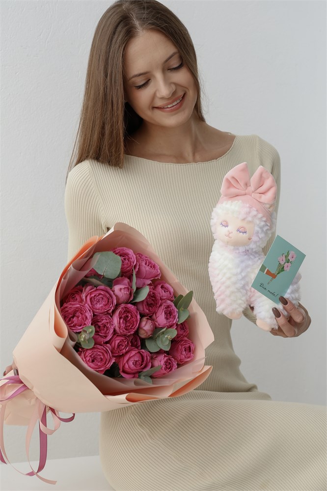 Набор Букет Мисти Баблз с эвкалиптом (9шт) + Альпака Радужная с открыткой