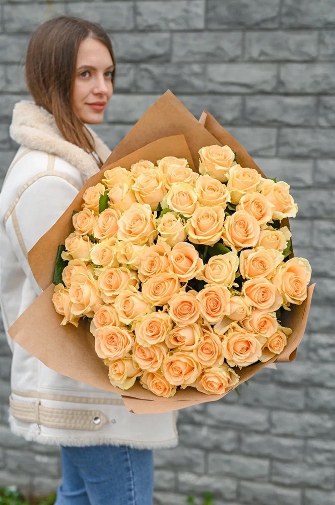 Букет 'Персиковая роза 51шт' — это воплощение нежности и утончённости. Великолепные цветы прекрасно подойдут для особого случая или чтобы порадовать близких. Такой букет напомнит о важности маленьких радостей жизни.